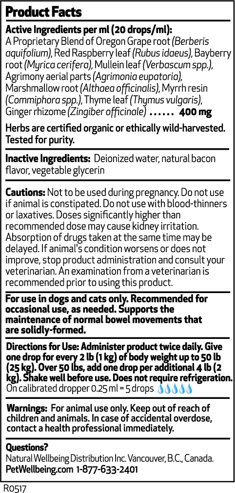 Stabilizes bowel movements and stools in dogs with diarrhea
