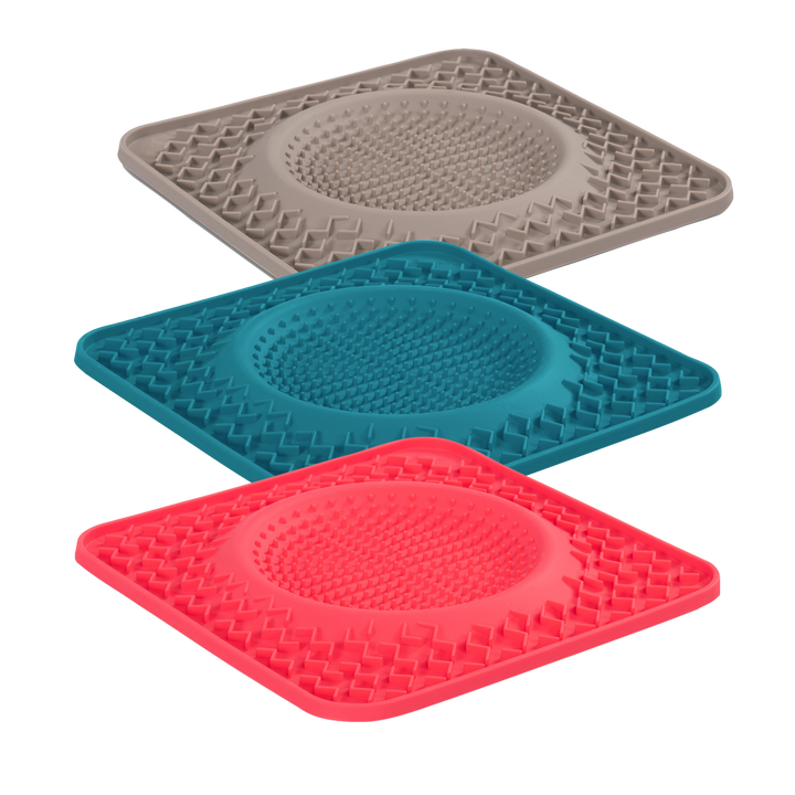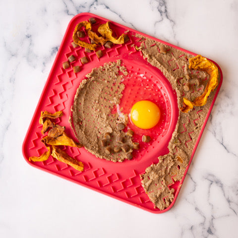 Stimulate your mutt while slowing their intake. Let your mutt lap up those healthy soft treats, supplements or food. Just spread your mutts favorite snack over the surface, let them lick it, wash it, and repeat.